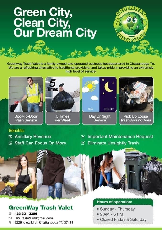 Greenway Trash Valet is a family owned and operated business headquartered in Chattanooga TN. We're the best in our field, and it's all thanks to the incredible relationships we've formed with our clients. Unlike our competitors, we're invested in developing a personal connection with each and every one of our customers, by providing quality service and being available to you 24/7. Get in touch with us when you're ready to learn more; we can't wait to meet you!